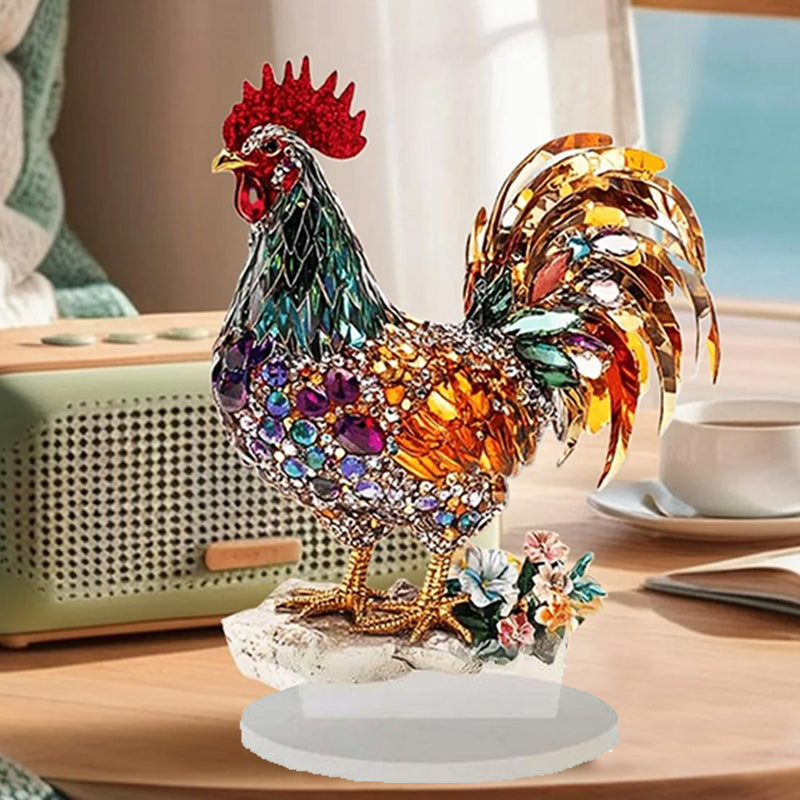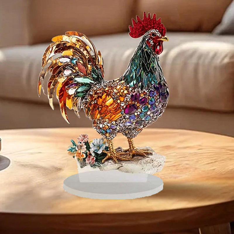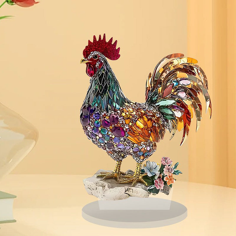 🌈 Bunte Glücks-Hahn Figur – Acryl Deko für Zuhause & Büro 🐓💰