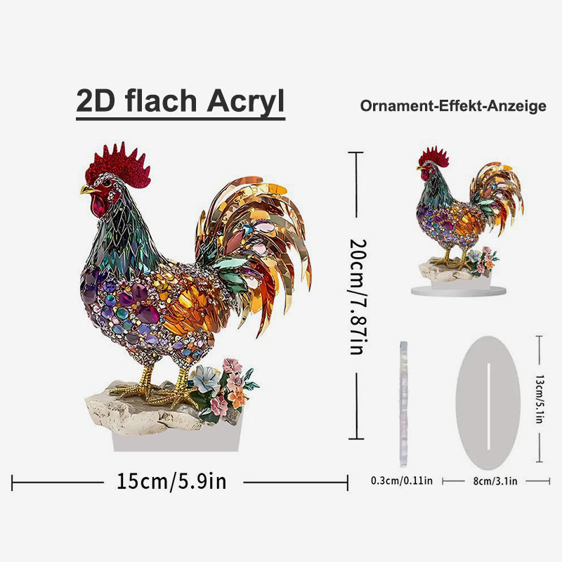 Sind Sie müde von langweiligen Schreibtischdekorationen? Diese farbenfrohe 2D Acryl Hahnfigur ist die perfekte Wahl, um Ihrem Zuhause oder Büro eine lebendige und glücksbringende Note zu verleihen!