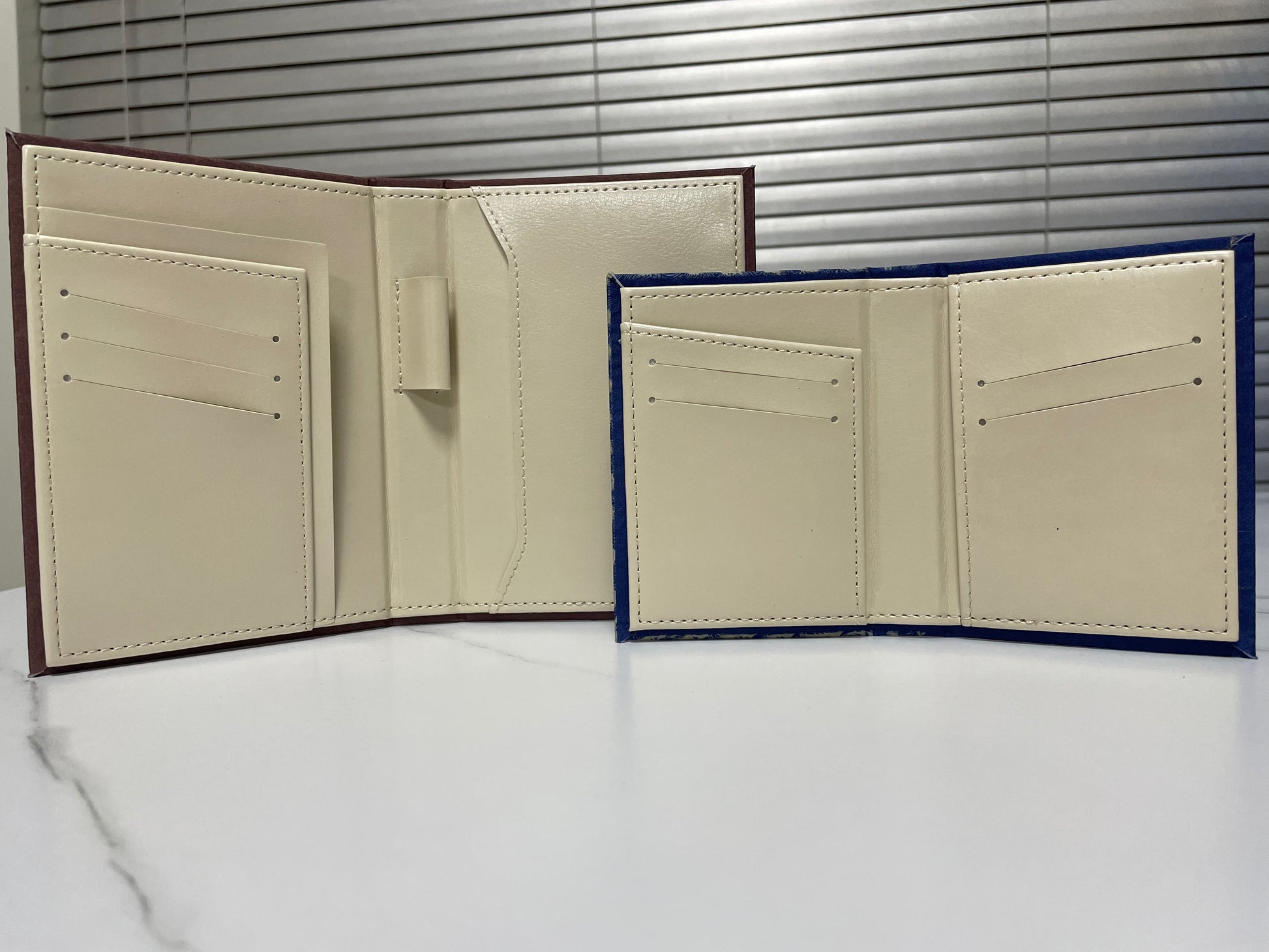 Wir verwenden Wärmeübertragungstechnologie, um aufwendige Designs, die dem Originalcover ähneln, auf Polyestergewebe zu drucken, während das Leder manuell auf die für die eingebauten Seiten erforderliche Größe zugeschnitten wird. Das Endprodukt entsteht durch eine Reihe von Prozessen, darunter Drucken, Schneiden, Falten, Nähen, Kleben und Laminieren.