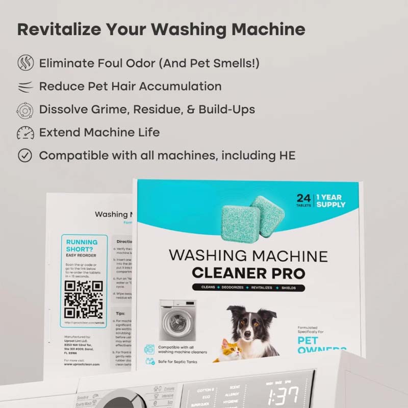 Reinigen Sie Ihre Waschmaschine gründlich von innen und außen – entfernen Sie Tierhaare, Gerüche und Rückstände. Stellen Sie die Frische wieder her, schützen Sie die Leistung und sorgen Sie dafür, dass Ihre Waschmaschine wie neu läuft.
