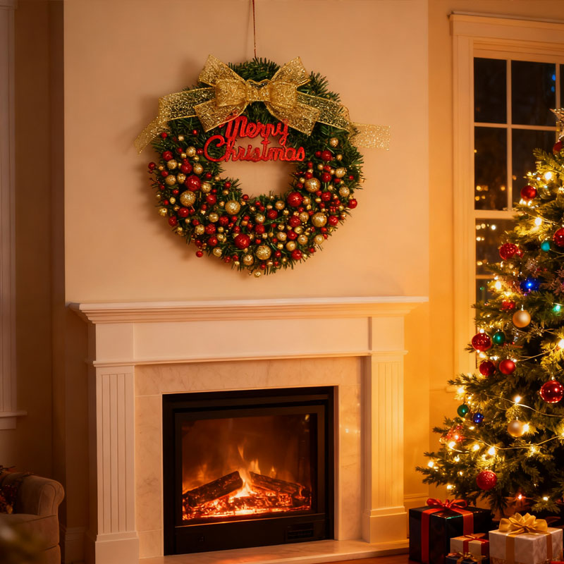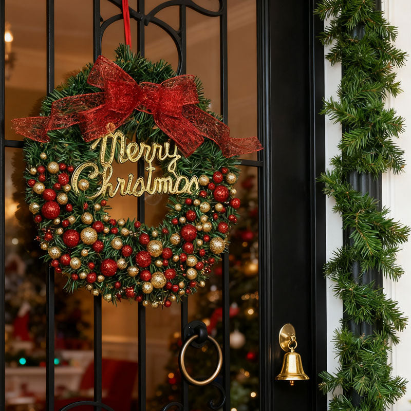 Dieser wunderschöne Weihnachtskranz ist die perfekte Wahl, um Türen, Fenster oder Wände während der Feiertage zu schmücken. Mit seinem eleganten Design und hochwertigen Materialien sorgt er für ein warmes, einladendes Ambiente – ideal für Wohnräume, Büros, Hotels oder Schaufensterdekorationen.