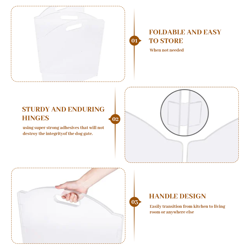 Schützen Sie Ihre Haustiere und sorgen Sie für ein stilvolles Zuhause mit unserem innovativen Haustiergitter aus transparentem Acryl! Im Gegensatz zu herkömmlichen Metall- oder Holzgittern bietet dieses 3-teilige Faltdesign volle Sicht und bildet gleichzeitig eine sichere Barriere für Türen, Treppen und Flure. Perfekt für Tierbesitzer, die Funktionalität ohne Kompromisse bei der Ästhetik wünschen!
