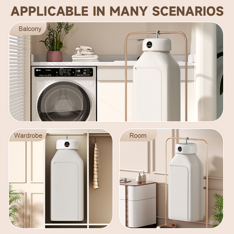 Sind Sie es leid, Ihre Wäsche mühsam zu trocknen, besonders bei feuchtem Wetter? Dieser intelligente, kompakte Trockner wird Ihre Wäschepflege revolutionieren! Hängen Sie ihn mühelos überall auf, wo Sie ihn brauchen – auf dem Balkon, im Schrank oder sogar im Wohnzimmer. Verabschieden Sie sich von feuchter Wäsche und freuen Sie sich auf schnelles, effektives Trocknen! 🌬️👕