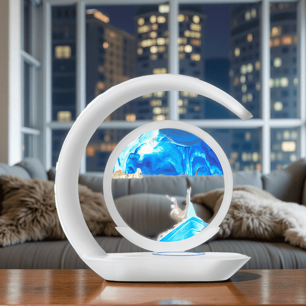 Ein kleines Kunstwerk, das mehr kann als nur gut aussehen: Fließender Sand, der sich immer neu formt, warmes Licht, das eine sanfte Stimmung schafft, und moderne Technik, die dein Handy kabellos auflädt. Ein Designstück, das Ruhe, Ästhetik und Funktion miteinander verbindet.