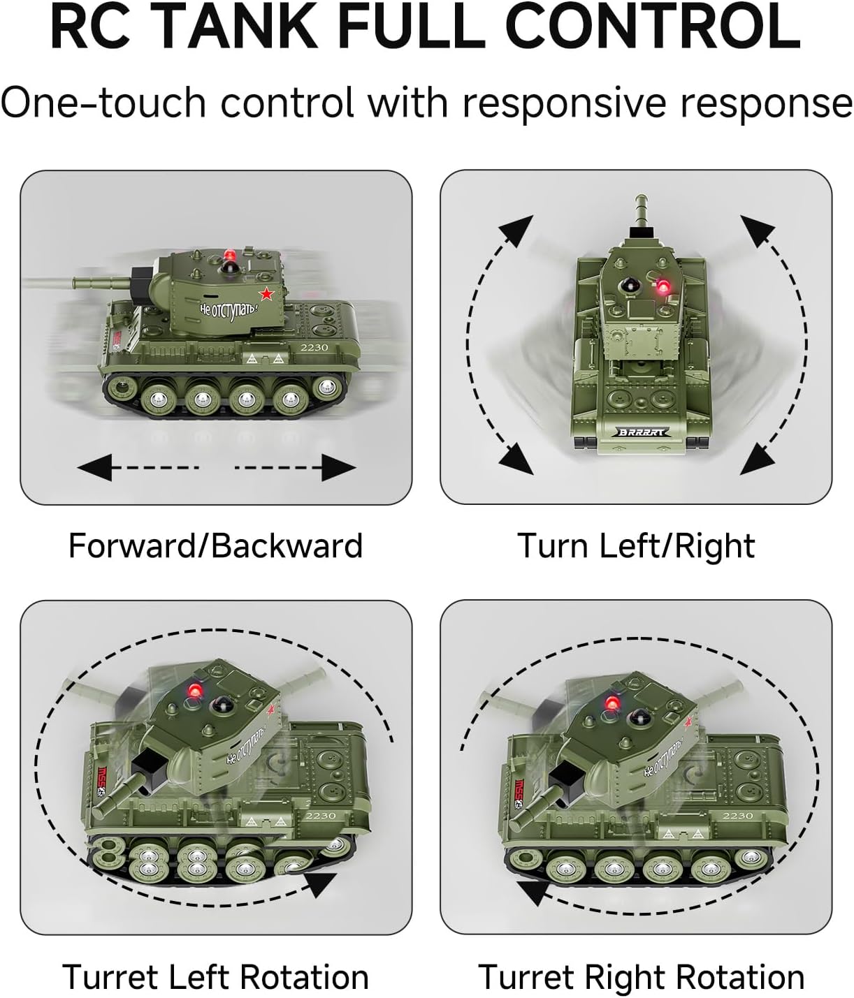 - 【Multifunktionaler ferngesteuerter Panzer】 Der ferngesteuerte Panzer unterstützt Vorwärts- und Rückwärtsbewegung, Links- und Rechtsdrehung, 360-Grad-Drehung, einen um 330 Grad beweglichen Turm, Infrarot-Schießfunktion, realistische Soundeffekte und Beleuchtung, 40-Grad-Kletterfähigkeit und Panzerkampffunktion für ein aufregendes militärisches Kampferlebnis.