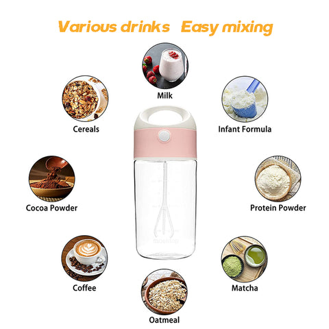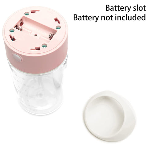 Drehen Sie den Griff, legen Sie zwei AAA-Batterien ein und drücken Sie dann den weißen Knopf, um den Shaker zu starten. Er ist einfach zu bedienen und dank des ergonomischen Griffdesigns können Sie die Flasche überallhin mitnehmen.