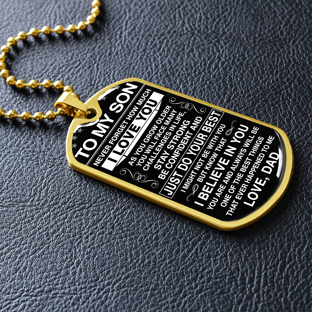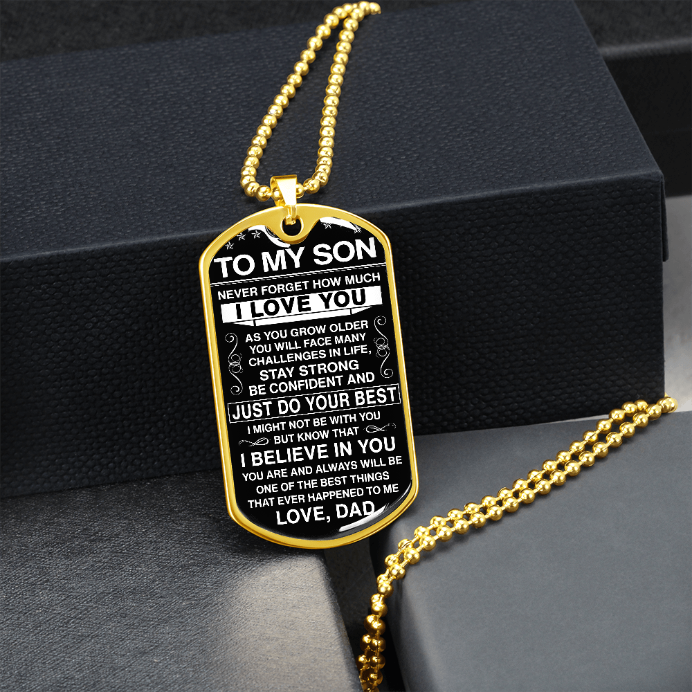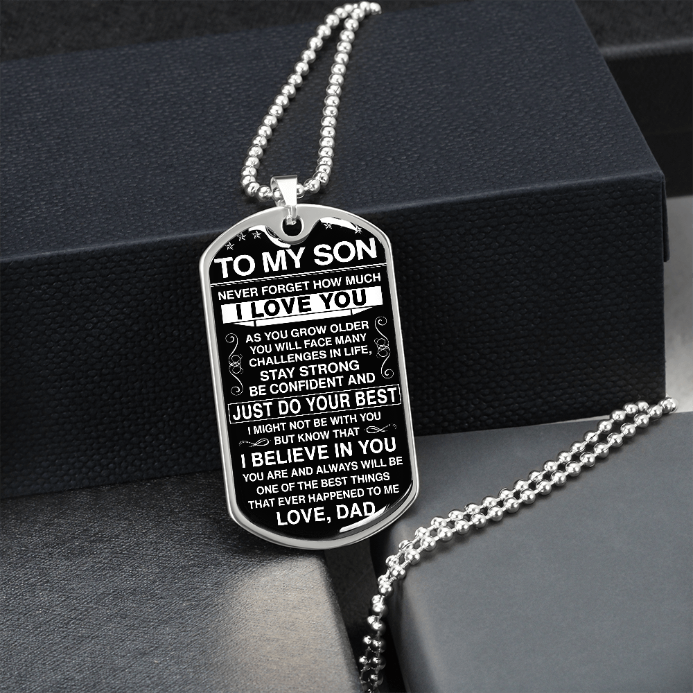An meinen Sohn – Vergiss niemals, wie sehr ich dich liebe – Erkennungsmarke – Militärkugelkette