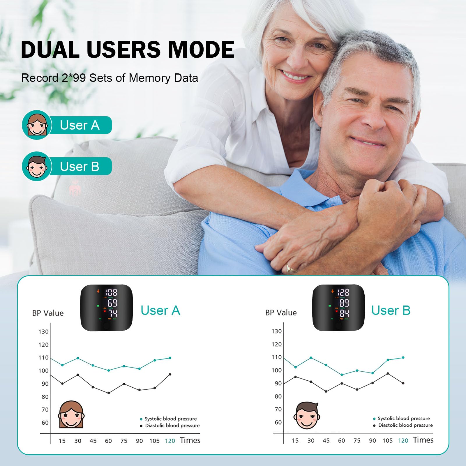 HD LED display and easy to use: the device works fully automatically, with just one push of a button, you can check your blood pressure and heart rate at any time. The large design with LED backlight allows the values to be read clearly on the screen even in the dark, which is very suitable for the elderly.